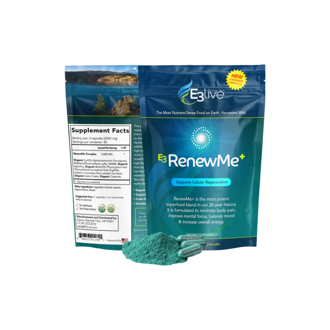 E3Live has been harvesting AFA since 1995, creating the technology and innovation that allows us to bring to you this RenewMe+ formula. E3Live has an industry-wide reputation for product purity and safety. E3Live’s pioneering mission is to create a collective awareness about earth’s most life giving, nutrient-dense aqua botanical, called AFA (Aphanizomenon flos-aquae).